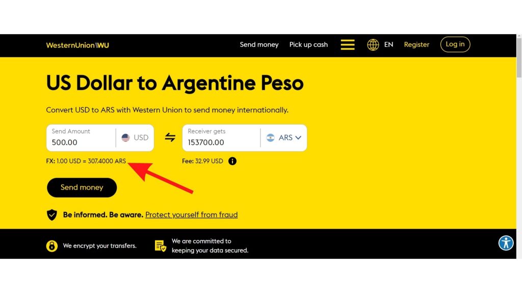 Below, there’s a photo of the exchange rate on Western Union as an example: