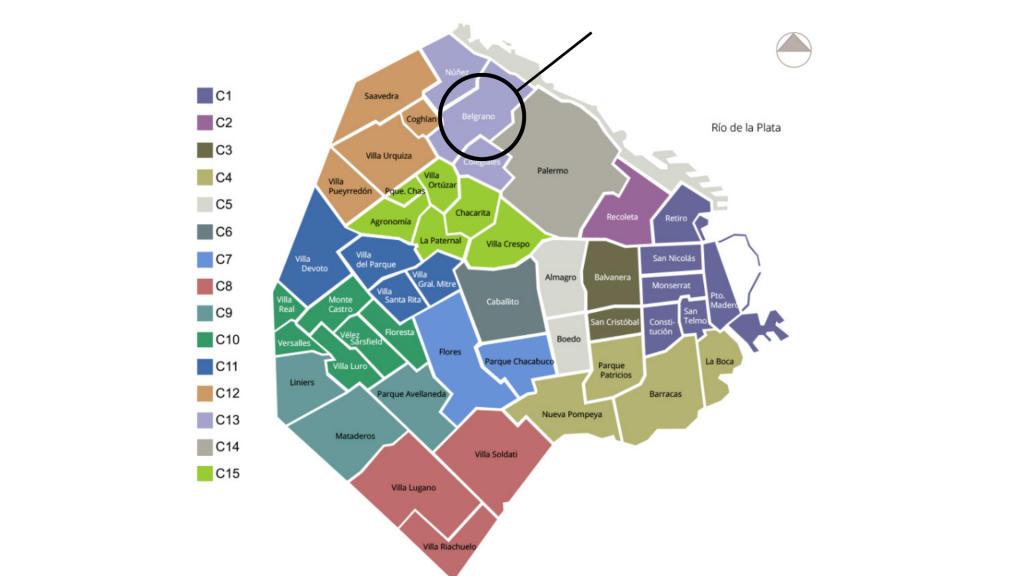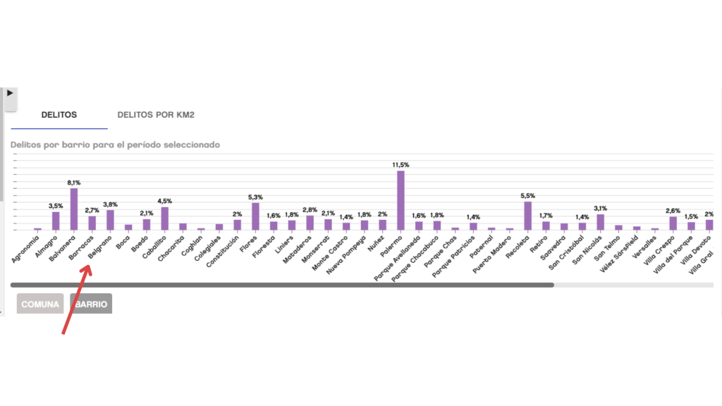 Belgrano is considered one of the safest neighborhoods in the city, as you can see on the map below, the crime rate percentage is very low compared to other areas in the city.