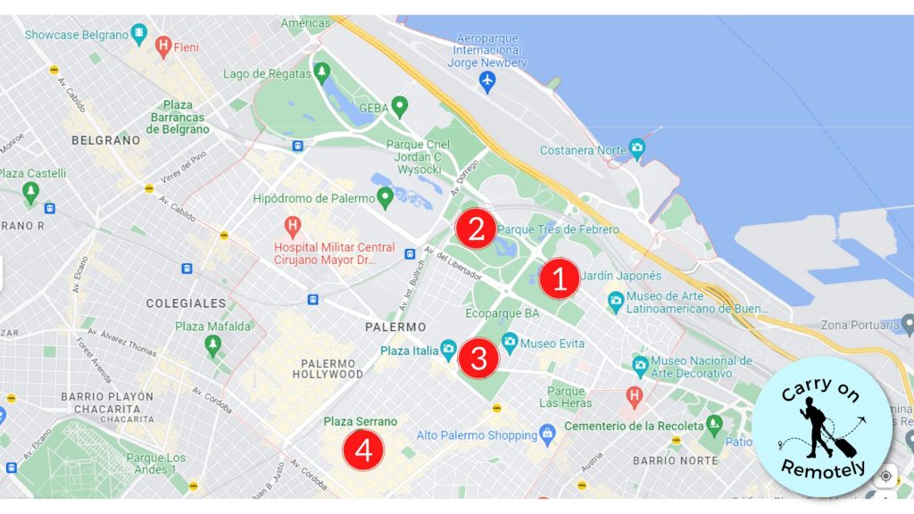 Palermo is a beautiful neighborhood to go for a walk. For this reason, I recommend staying in Palermo for your stay (especially if you plan on staying more than one week) in Buenos Aires.